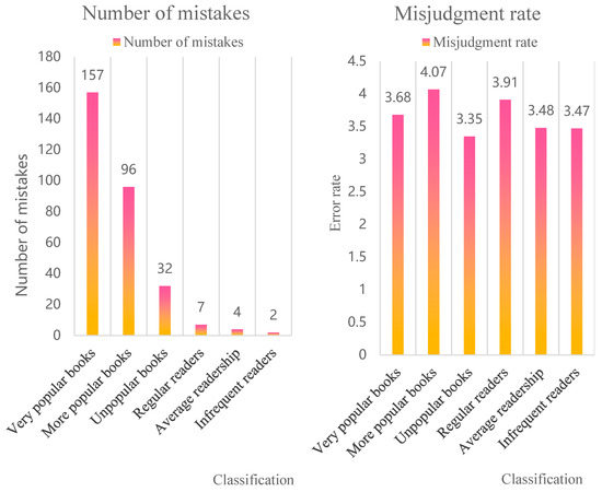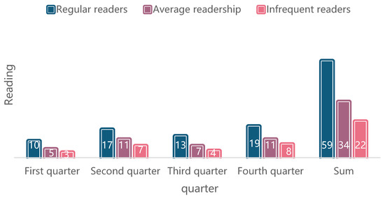 As can be seen from Table 2 and Figure 7, readers can be classified into three categories according to their amount of reading: those who read frequently, those who read generally, and those who do not read regularly. Additionally, those who read frequently differ greatly; they have different requirements for reading. In true library services, most libraries follow the same rules for users. In fact, borrowing times are often different between readers. For readers who like to read, because of the large demand for borrowing, the library can consider changing the number of books borrowed and circulated, rather than treating readers with different needs in the same way, to better serve the readers. On the other hand, for those who read frequently, their borrowing interest can be further evaluated by providing them with effective publicity services.