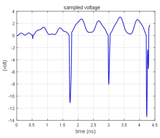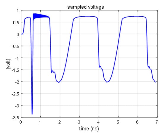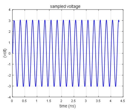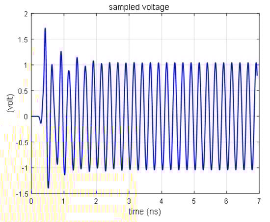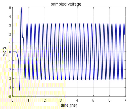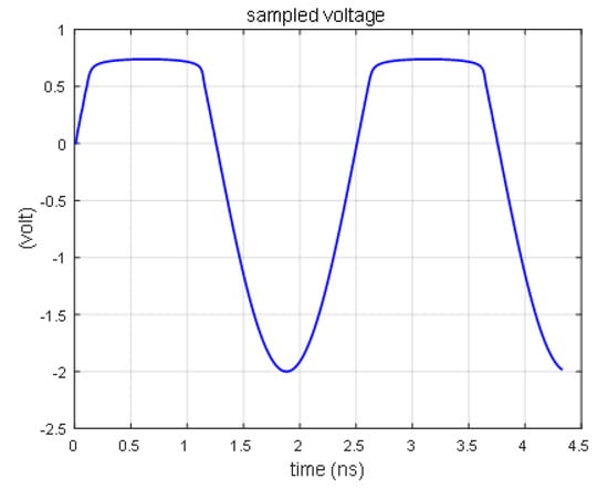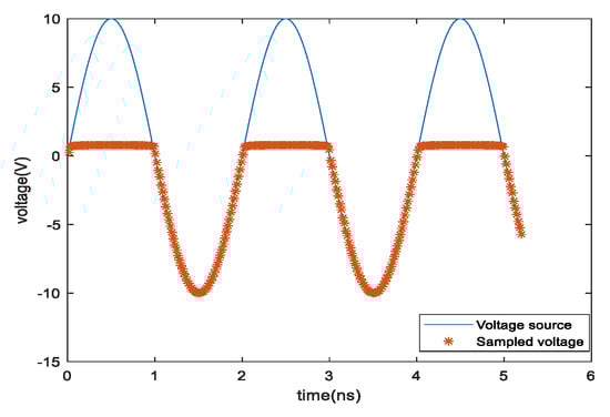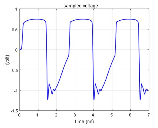 The response curve of the diode is obtained by the FDTD method, as shown in Figure 5, using the same simulation condition as reference [18]. When the source voltage is higher than 0.7 V, the sampling voltage of the diode remains at 0.7 V, which is consistent with the theoretical analysis [19].