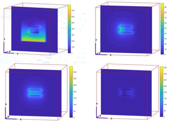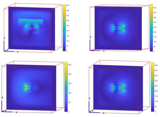 The dynamic changes of the electric field in the circuit are shown in Figure 12 below. These figures are all made by MATLAB 2018 using the animation function.