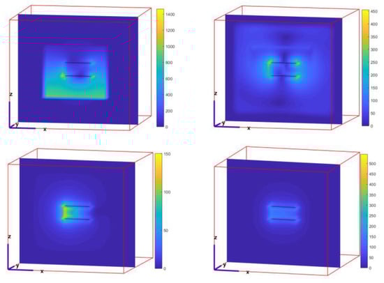 In the second example, we define the frequency of solving the problem as 4 GHz and the maximum amplitude of the excitation source as 6 V. It is used for testing the improved equivalent circuit formula under high-frequency and low-voltage injection. The results are shown in Figure 7, which are consistent with the analysis in reference [18].
