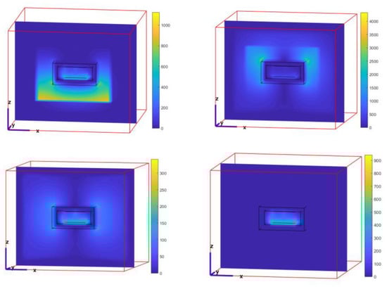 In the third example, we define the frequency of solving the problem as 4 GHz and the maximum amplitude of the excitation source as 30 V. It is used for testing the improved equivalent circuit formula under high-frequency and high-voltage injection. The results are shown in Figure 8, which are consistent with the analysis in reference [18].