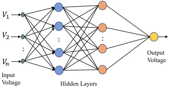 The output of this first layer of neurons are then fed as the input to the second layer of neurons and so on. The calculation can be repeated for any given number of layers and the output of beamformer can be evaluated. The output voltage of the DNN beamformer is implemented by a linear activation function and thus can be expressed as