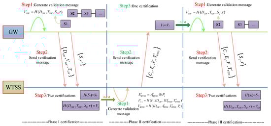 The agile authentication model based on the lightweight key of the wind turbine status sensor is mainly divided into three stages: the wind turbine status sensor authentication stage, the regional gateway authentication stage, and the authentication confirmation stage. The certification process of each stage is shown in Figure 4.