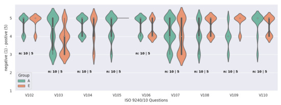 | V115 | A/E | I found the various function in this system were well integrated./Ich fande die verschiedenen Funktionen in das System gut integriert. | Rate from 1 = strongly disagree/stimme überhaupt nicht zu to 5 = strongly agree/stimme vollkommen zu | |