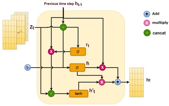 GRU comprises two parts: the reset gate and update gate . As Figure 4 shows, we take the output of the encoder as the input of GRU at the current moment. By using the update gate, the irrelevant features at the previous time are ignored while important features are retained, and the formula is as follows: