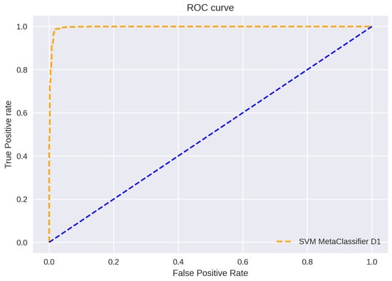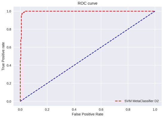 Supervised ML algorithms deal with the learning of hypotheses with input features and output variables. In this study, SVM is used as a meta classifier which is used to predict the outcome. SVM is used in the second level, which accepts the prediction sets from different DL architectures as training data on which it will train. This prediction dataset will be in the form of 0 or 1 and its dimension will be according to the size of the test dataset and the Number of CNN used for ensembling. Let us suppose there is a test dataset of 300 images and five best-performing base learners; then, the prediction dataset will be 300 × 5. After training on the prediction dataset, the model will be evaluated on test data. SVM is mainly used for classification tasks. This model works by plotting the data samples in the n-dimensional plane and finding the decision boundary between the classes, which is called a hyperplane. The number of features determines the dimension of a plane. The best hyperplane is selected by calculating the distance between support vectors and boundary lines. This distance is called the margin. Therefore, the plane with the highest margin is declared the final decision boundary [12]. Linear kernel SVM is used in this study which is used for linearly separable problems defined by Equations (1) and (2).
