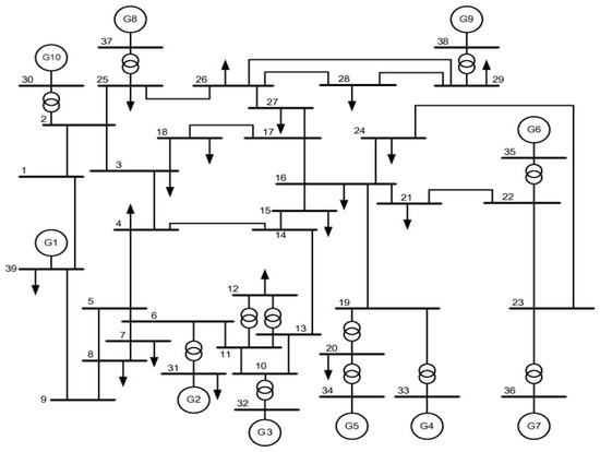 Single-line diagram of 39-bus New England system.