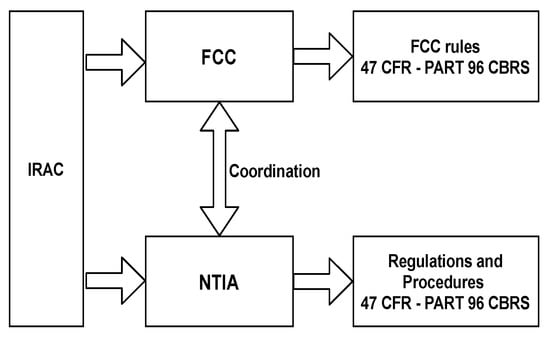 - Interdepartment Radio Advisory Committee (IRAC). National Telecommunications and Information Administration. Available online: https://www.ntia.doc.gov/page/interdepartment-radio-advisory-committee-irac (accessed on 20 November 2022).