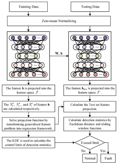 With the development of modern detection and sensing technology, sensor signals such as voltage, current, flow and pressure in industrial systems can be collected with large scale [5,6,7,8]. Therefore, fault detection methods based on data-driven have developed rapidly, such as principal component analysis (PCA), linear discriminant analysis (LDA), independent component analysis (ICA), and other multivariate statistical methods that have been widely investigated by different scholars [9,10,11]. However, variables of industrial process often provide more complex correlations and nonlinearity. Using linear methods will lead to unsatisfactory results. Therefore, many researchers combined kernel methods with traditional multivariate statistical methods to deal with nonlinear problems, such as kernel principal component analysis (KDA) [12,13].