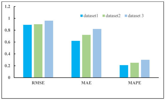 This experiment trains attention deep matrix factorization (ADFM) models on three datasets. Figure 2 shows the results of the experiments with the ADMF models on three datasets. The ADFM model has the smallest root mean square error (RMSE), mean absolute error (MAE), and mean absolute percent error (MAPE) on dataset 1, and the model prediction effect is the best. In this experiment, the amount of coaching knowledge in the dataset, a pair of, and dataset three is considerably below that in dataset one. Therefore, we will carry out comparative experiments on the dataset.