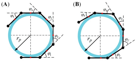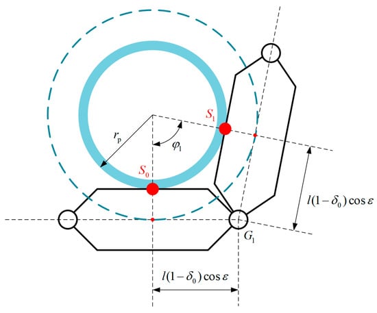Figure 7 shows the projection of the two adjacent joint modules in contact with the cylinder in the plane.