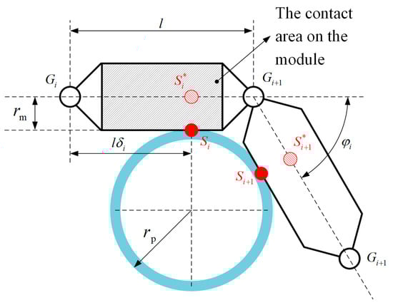 For further analysis of the contact circumstances, we simplify the adjacent joint modules into a shuttle-like structure with connected heads and tails, as shown in Figure 6.