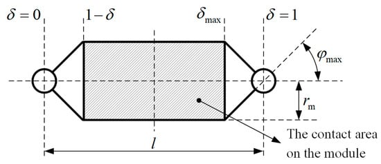 Figure 8 shows the parameters of the joint module. The angle of the joint module’s shuttle part is the same as the range of the rotation angle of the joint, which is . Therefore, we consider that the maximum rotation angle of the joint and the inclination angle of the shuttle part are identical, both of which are . The parameters of the joint module should meet the requirements as follows:
