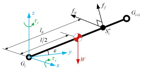 The output torque of the joint is the critical parameter to ensure the motion of snake-like robots. As shown in Figure 10, we simplify the joint module of the snake-like robot in contact with the surface of the cylindrical object to a single cantilever module for analysis. We also neglect the anterior module reaction force to the analyzed joint. Moreover, the reaction force to the joint module cancels off with the normal force and the horizontal component of the friction force. Meanwhile, considering that the analyzed joint module is an ideal linkage without thickness, the vertical component of the friction force cancels off with the gravitational force of the linkage, expressed as follows: