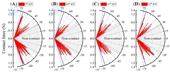 Non-contact zone: (A) JCF of the 9th module; (B) JCF of the 10th module; (C) JCF of the 11th module; and (D) JCF of the 12th module.