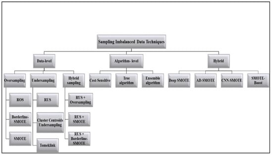 - Choirunnisa, S.; Lianto, J. Hybrid Method of Undersampling and Oversampling for Handling Imbalanced Data. In Proceedings of the 2018 International Seminar on Research of Information Technology and Intelligent Systems (ISRITI), Yogyakarta, Indonesia, 21–22 November 2018; pp. 276–280. [Google Scholar]