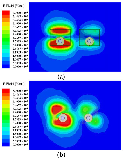 Figure 5. Electric filed distribution for the reference and proposed antenna arrays. (a) Reference. (b) Proposed.