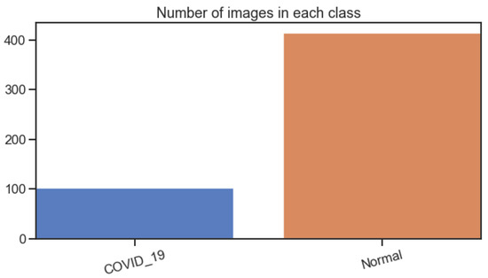 The second data set includes 1583 normal, 576 COVID-19, and 4273 pneumonia pictures. We exclude pneumonia and make use of COVID-19 and normal chest images [106]. Our principal investigation focuses on COVID-19 with a medium size data set of chest images concurrently with data augmentation techniques. In Figure 1, Figure 2 and Figure 3, we present the images distribution of each class in data set 1 and data set 2 and chest image, respectively.