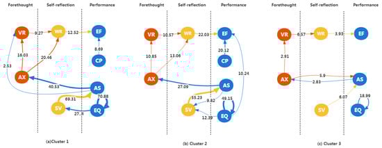 SRL behavior transition diagram of different learning groups. ((a) cluster 1 behavior transition diagram; (b) cluster 2 behavior transition diagram; (c) cluster 3 behavior transition diagram).