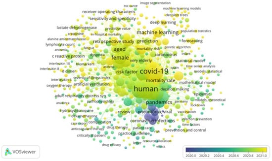 This section presents a brief bibliometric analysis to introduce the trend of rapidly emerging topics in mortality risk prediction in COVID-19 and comorbidity patients research based on ML algorithms, where significant applied research activity has been extensively initiated since the beginning of the final phase of the pandemic. We focus on the methodology used in the bibliometric analysis, allowing traceability of the state of research applied in the different aspects of mortality risk prediction in COVID-19 patients and related research that can be found in the literature analysis. Therefore, we present the bibliographic articulation between various articles on machine learning to combat COVID-19, diagrammed by links between clusters representing networks and correlations, built based on the relationship between the number of publications, citations, countries, standard references, co-citations, organizations, and journals.