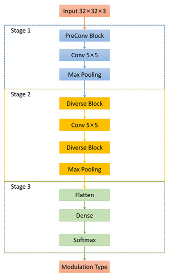 - Huang, J.; Huang, S.; Zeng, Y.; Chen, H.; Chang, S.; Zhang, Y. Hierarchical Digital Modulation Classification Using Cascaded Convolutional Neural Network. J. Commun. Inf. Netw. 2021, 6, 72–81. [Google Scholar] [CrossRef]