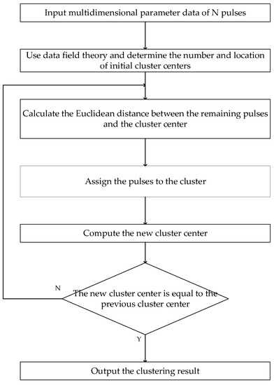 K-means clustering is a typical clustering algorithm with wide applications [20,21,22]. The basic principle of a signal sorting clustering algorithm based on data fields is as follows: