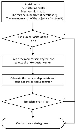 Equations (A9) and (A11) are the iterative formulas of membership degree and class center . Membership degree and class center are calculated iteratively until objective function J achieves the minimum value.