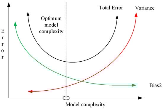 . Generally, the more complex the model, the lower the deviation, which leads to the reduction in the total error. Therefore, the optimal model should balance the deviation and variance.