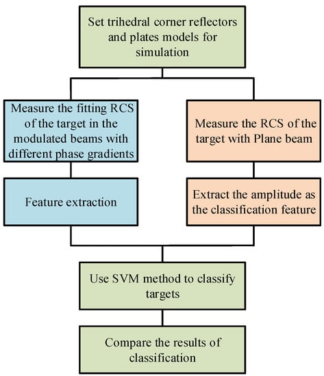 To classify the plates and trihedral corner reflectors, we use simulation to obtain the amplitude and phase of the target in different linear wavefront phase-modulated beams. The classification process is shown in Figure 7.