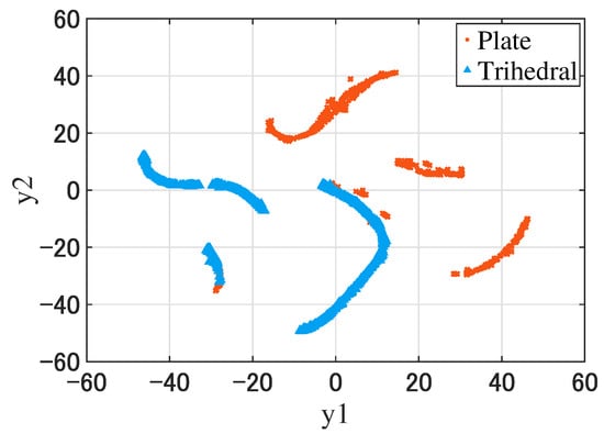 The visualization of the features of the plates and trihedral corner reflectors after dimensionality reduction (the number of data is 1386).