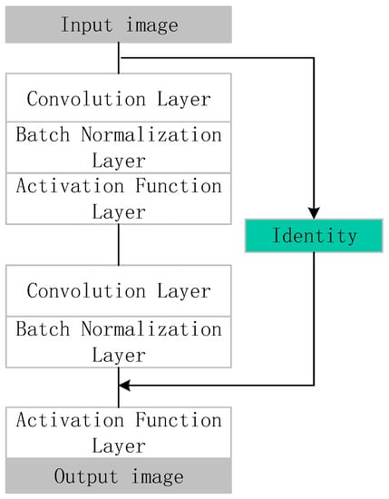 The training effect of convolutional neural network decreases significantly with the increase of network depth. In order to improve the training effect, the residual neural network (Resnet) proposed by HE [] can effectively improve the performance of deep neural network without extra computation by introducing the residual module, whose structure is shown in Figure 2, and the identity operation means no operation is performed.