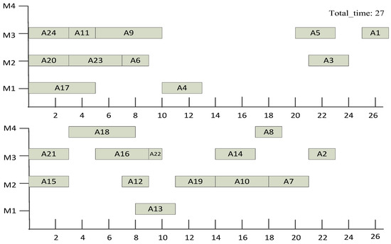 Then, the processes on the longest process sequence were scheduled to form the initial scheduling plan, as shown in Figure 3.