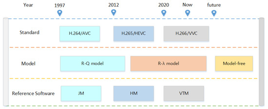Rate control techniques have been around for a long time, but the overall mode of operation has not changed significantly. As shown in Figure 5, even though the reference software has transitioned from HM to VTM, the reference software in VVC, like HEVC, still uses the R-λ model. This also proves that the R-λ model performs better compared to other models. Therefore, most studies have been based on this model for algorithm improvement. When the R-λ model is truly abandoned, the model-free approach may become mainstream.