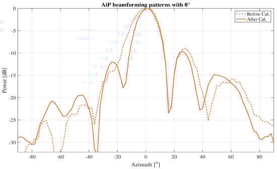 AiP beamforming patterns at 0° without and with calibration.