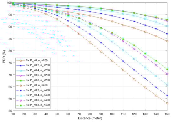 PDR performance of fixed values for total vehicle numbers of = 200 and 400.
