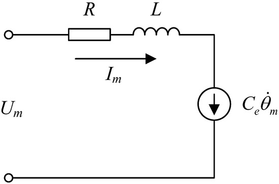 According to [38], the PMSM can be simplified as a DC motor, and the equivalent electrical circuit is shown in Figure 3.