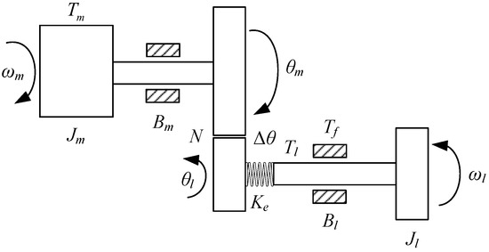 According to [38], the structure diagram of the gimbal servo system with harmonic drive is shown in Figure 4, and the dynamic model can be established as follows: