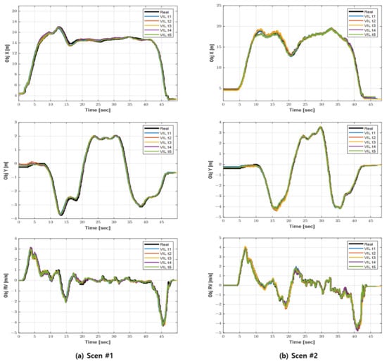 The VILS system must be capable of verifying the autonomous driving system and whether the test results obtained using the proposed VILS are similar to those of the vehicle test. Even if a VILS System with various components has been developed, it is impossible to replicate and reproduce the vehicle test scenario using the VILS system if the behavior of the vehicle is different from that observed during the vehicle test [47].