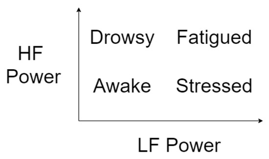 Hypothetical situation as a function of LF and HF power of HRV [22].