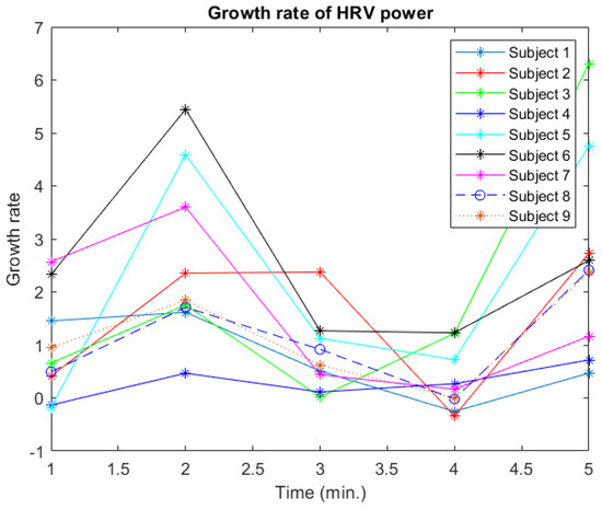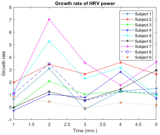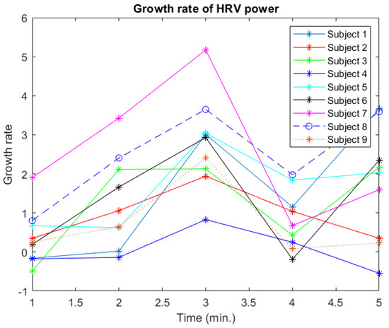Experiment 1 growth rate of HRV power.
