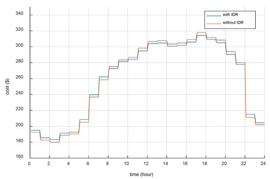 Figure 7 compares the running costs with and without the IDR method. During the peak electricity consumption period between 8:00 and 22:00, the operating cost with IDR is significantly lower than that without IDR, and the total daily operating cost is USD 6234 and USD 6324, respectively, which shows that the model proposed in this study can reduce the operating cost of the IES and then can reduce the management difficulty when the load fluctuates greatly.