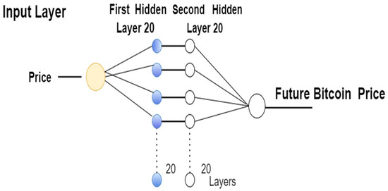 Blockchain (BC), the technology behind cryptocurrencies, is widely thought to be fundamental in providing the backbone of increased security and privacy in artificial intelligence (AI) across a wide range of sectors, including the Internet of Things (IoT) ecosystem. BC technology has several components spread throughout the entire global network of computer systems, particularly its digital recording of transactions [5,6]. A transaction and a block are two essential components of the BC, in that precise order. The authors [7] demonstrated that, with respect to exchange rates across cryptocurrencies over time, the impacts of networks on competition among the developing cryptocurrency market are dependent on two factors: (1) rivalries among the many different currencies and (2) competition among the numerous exchanges [8]. The authors [9] refer to the competition between cryptocurrencies as “a positive thing” and characterize it using the phrase “healthy competition.” They also argue that technological and security innovations are important. According to the authors [10], bitcoin exhibits volatility shock transmissions, but the uncertainty of economic policies has no influence on the transmission of shocks. Bitcoin, sometimes referred to as cryptocurrency, is a form of digital or virtual currency used in several financial systems [11]. It is guarded by encryption, which prevents it from being copied or reused and ensures that it cannot be faked. The fact that it is not issued by a central authority or central bank. This is how it differs from traditional currencies. Instead, in contrast to traditional currencies, it is a decentralized virtual currency that can be exchanged using cryptographic protocols [12]. Other qualities include its production via BC technology [13], which is extraordinarily intricate, and attempts to store data in such a way that it is difficult—if not impossible—to update, cheat, or hack the system. Bitcoin has started to carve out a space for itself, which, depending on how it develops, may either aid other cryptocurrencies in their quest to achieve widespread recognition or play a significant role in the demise of cryptocurrencies as a whole. In their infancy, cryptocurrencies were impossible to forecast, particularly whether they would proceed toward widespread use across global markets in the near future [14].