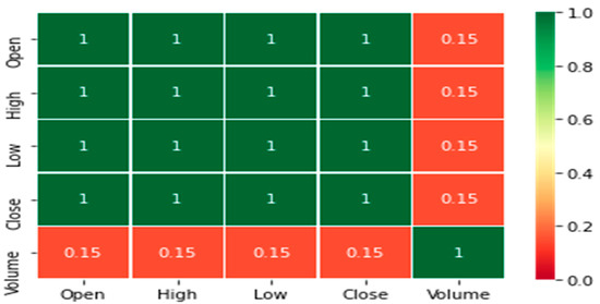 There are five important characteristics contained inside the bitcoin data. The correlation strategy was put into action so that correlations could be discovered between these traits. The relationships between the attributes of bitcoin cryptocurrency are illustrated in Figure 8.