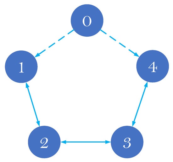 In this section, some necessary results from graph theory are introduced to describe the communication topology of a spacecraft formation system []. A graph is a triple consisting of a vertex set , an edge set , and a relation that associates each edge with an ordered vertex pair , and are called as the parent vertex and the child vertex, respectively. The neighbor set of is denoted by and is a neighbor of . A graph is called undirected if the graph has the property: , thus an edge in a undirected graph can be denoted by a vertex pair , which means that the spacecraft and can communicate. Similarly, the neighbor set of in a undirected graph is denoted by .