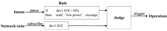 (3) The application layer includes the specific IoT management functions, and it hides the details of the underlying network technology and focuses on the business requirements. It describes the user’s “what to do”, expresses the user’s management intention through the graphical interface or natural language, and parses these contents into control instructions that can be recognized by the twin control layer.