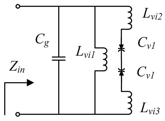 Figure 3 shows the equivalent circuit of the proposed resonator. The cavity, which is filled with LTCC, is equivalent to a capacitor, and the through-metal via is equivalent to an inductor [9]. The equivalent capacitance between the circular patch and ground is Cg and the equivalent inductance of the center via is Lvi1. The equivalent inductances of the via holes connected to the varactor are Lvi2 and Lvi3.