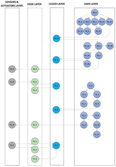The assignment of tasks to the RTIoT architecture layer is performed by the designer at the system specification stage. The next step is to map the specifications to the different layers of the RTIoT architecture. Figure 7 shows the results of the specification mapping introduced in Section 5.1.