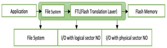 The software architecture is demonstrated in Figure 1. Figure 1 shows the Application, file system, FTL, and flash memory is the logical flow as written by in code. The concept revolves around the FTL layer.