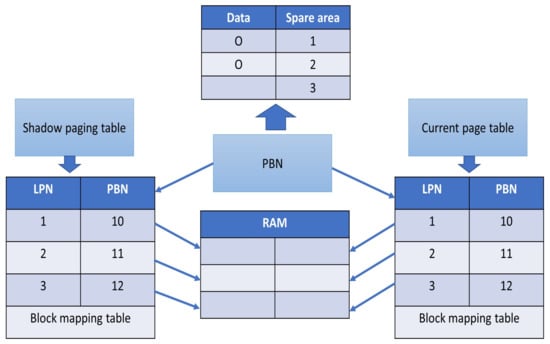 When the data has been modified or changed, we can use the shadow paging table to retrieve the old mapping information. The system would be corrupted if the mapping table is modified or changed [5]. Our scheme, which employs shadow technology, is capable of resolving this issue and recovering the mapping table records as shown in Figure 4. The basic idea is to take advantage of the shadow technological advantages and familiarise it with FTL algorithms. Our objectives are to integrate shadow algorithms into the FTL storage algorithm in order to retrieve mapping information.