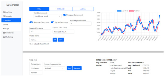The implementation of the models is realized with the Python package statsmodels [30]. The model implementation is part of the server-backend of the data portal. A web application is available as a graphical user interface (Figure 3).
